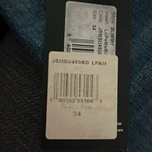 7 For All Mankind Slimmy Jeans, Size 34 Waist, Inseam 33.5”, Length 44”, NWT, Smoke-Free Home