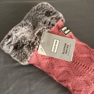 New HUNTER Slipper Socks Pink Faux Fur Knit Brown Gray One Size