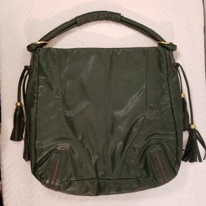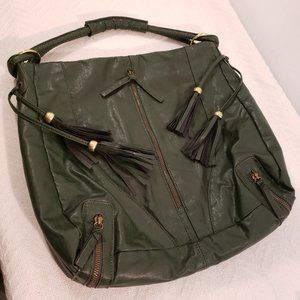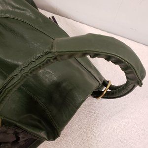 BUENO Green Slouchy Tote Bag Sz Large Vegan Leather Tassels Zippers *NOTE issues