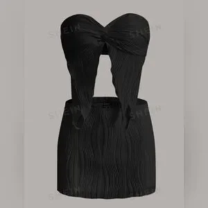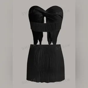 SHEIN ICON BODYCON MINI SKIRT IN BLACK *SKIRT ONLY* SIZE S TEXTURE KNIT FABRIC