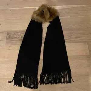 The Limited Black Scarf w Brown Faux Fur Detailing
