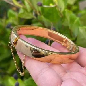 Gold tone oval hinged bangle bracelet