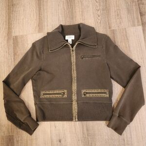 Ann Taylor LOFT Bomber Jacket, Army Green, Olive, Zip up Front, Women Medium