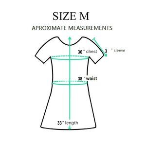 Measurements: Length = 33 inches, Chest = 36 inches, Waist = 30 inches, Sleeve = 13 inches.