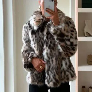 Women's Faux Fur animal print Long Sleeve Warm Coat