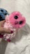 Both owls are new with tags! They are a vibrant blue and pink color with soft fuzzy faux feathers. They have sparkly eyes, beaks, and feet. The blue owl has a dark grey/black colored pattern on its body while as the other owl has a light pink feathering.