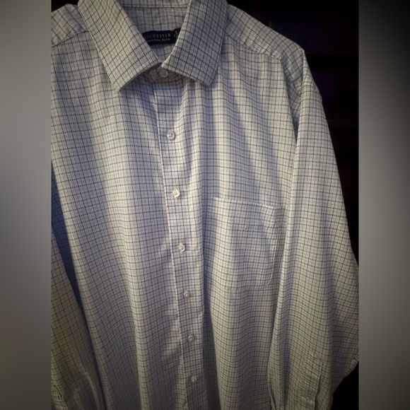 Rochester Men’s Long Sleeve Button Up Shirt w/ Pocket - Lt/Dk Blue Plaid - Size 36/37T - 18 Neck - EUC
