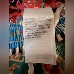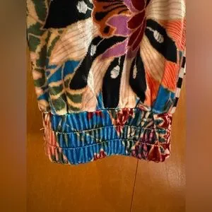In gently used condition. Wore once and hand washed / air dried. They are slightly too long and large on me since I’m 5’-4” and FARM Rio is not very petite friendly, though they look kind of cute rolled up! So soft and beautiful and I absolutely love the print and attention to detail on these pants. The interior has a lining that is also a different pattern which is cool.
