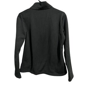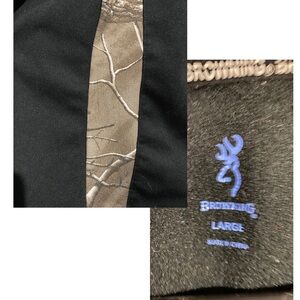 Stylish quarter-zip pullover. Features black fabric with camo accents. Embroidered logo on chest.