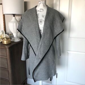 Vince Drape Front Leather Trim Wool Wrap Coat