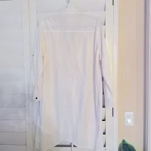 This is a long white linen casual long sleeve summer shirt-dress by ZANZEA. Size XXL. Wears beautifully and casually with summer sandals.