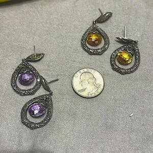 💎 Silvery Dangly Gemstone Earrings vintage - sold separately!