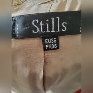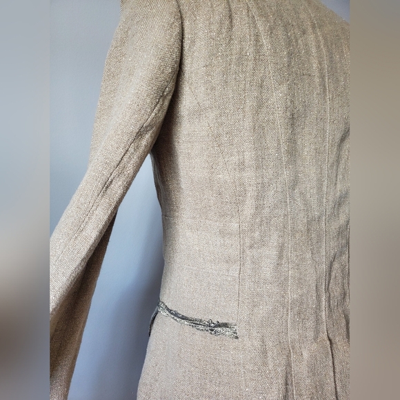 STILLS ATELIER linen gold sparkle blazer with silver embroidered pockets. Size 4