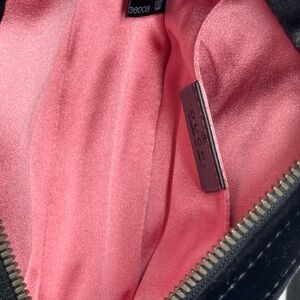 Exterior: clean exterior but will show micro scratch on hardware and micro fuzz on velvet.