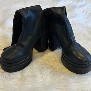 Steve Madden Ella Boots Knee High Platform Faux Leather Block Heeled. Black