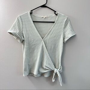 Copper Key cream and baby blue striped waffle knit short sleeved wrap top. Size Large