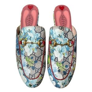 Gucci GG Supreme Monogram Blooms Princetown Slippers Loafers Mules in excellent pre owned condition. Some signs of wears. They were very well cared for and come from a non smoking pet free home. Will come with a dust bag.