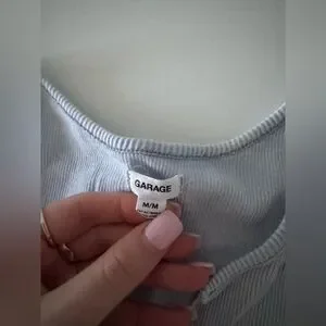 GARAGE VNECK CUT OUT CROPPED RIBBED BLUE TANK TOP HALTER IN SIZE MEDIUM