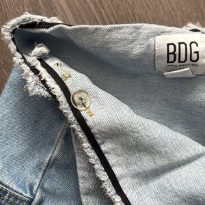 BDG Urban Outfitters patchwork denim wrap around skirt. Size is small. Has pocket on the front. I adore this skirt, it just doesn’t fit me anymore unless I don’t use the button.