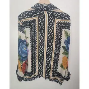 Farm Rio Women's Sz. XS Ivory Black Floral Blouse Classic Button up