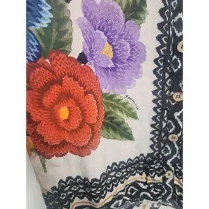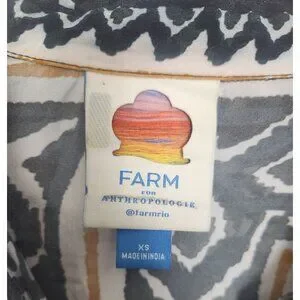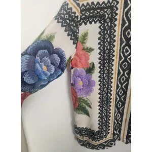 Farm Rio Women's Sz. XS Ivory Black Floral Blouse Classic Button up Anthropologie is in gently used condition. Some bleeding on the cuff with the black. (see pictures)