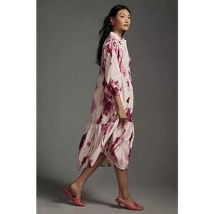 Anthropologie Maeve Bettina Dress Tiered Shirt Buttondown Watercolor Pink Small