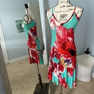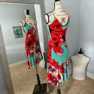 Floral Brightly Colored Asymmetrical Tropical Vacation Dress SMALL