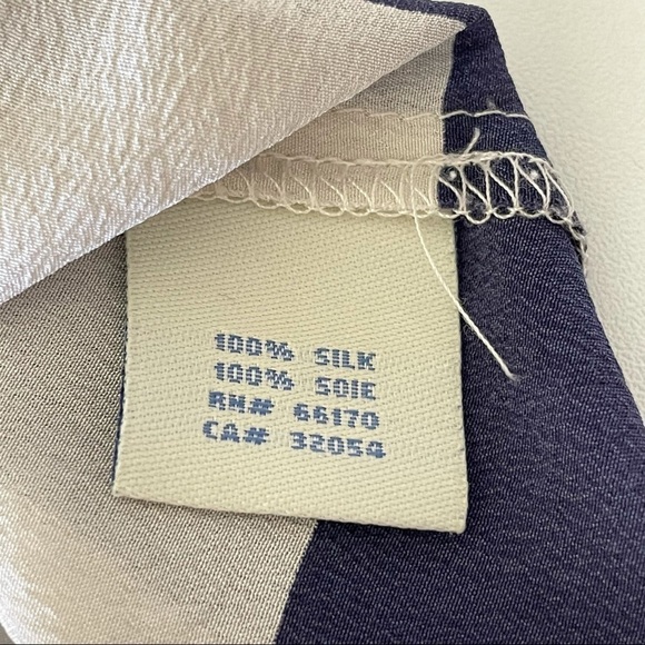 Anthropologie Odille Silk Striped Blouse in Navy Blue / Ivory, Size 12 / Large.