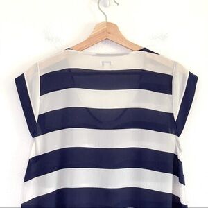 Anthropologie Odille Silk Stripe Cap Sleeve Button Front Blouse Navy Ivory Large