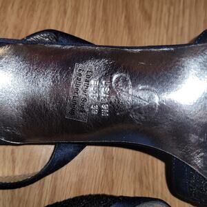 These shoes are a gorgeous deep, midnight blue! The footbed is leather and shoe lightweight so a comfortable dress shoe for those special occasions…especially involving dancing or extended wear…