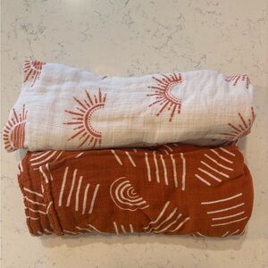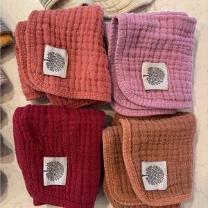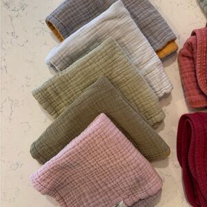 Newborn muslin bundle: set of 6 burp clothes, 5 bibs, 2 swaddling blankets. All in great condition used on one baby only.