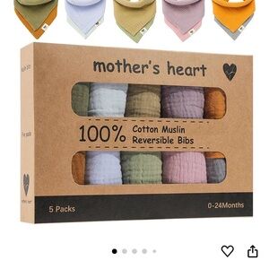 Mother's Heart Bandana Drool Bibs - Natural Cotton Muslin Baby Bibs - Highly Absorbent Polyester-Free and Plastic-Free for Teething - Set of 5 Solid Color