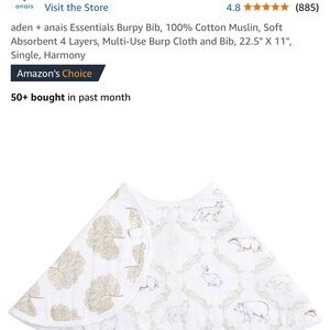 aden + anais Essentials Burpy Bib, 100% Cotton Muslin, Soft Absorbent 4 Layers, Multi-Use Burp Cloth and Bib, 22.5" X 11"