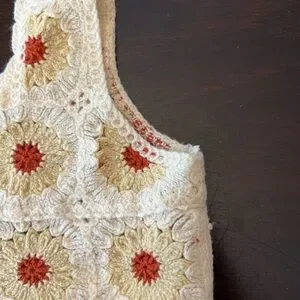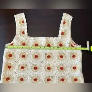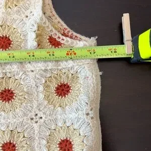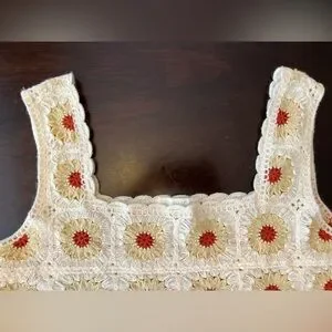 Rebellion Again Sunflower Crochet Top Cream Cropped Floral Womens Size L