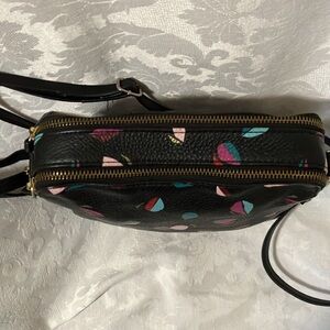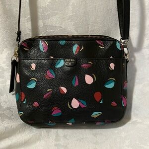 This cute EUC Fossil Sydney crossbody has two roomy sections, one with a slip pockett, the other with three card slots and a zipped compartment. There’s a white smudge on the lining as shown in the photo; otherwise a clean bag with no marks or spots. Adjustable/ detachable strap
