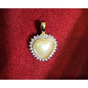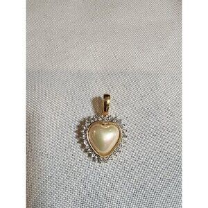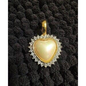 Vintage Faux Heart Shaped Pearl and Rhinestone Necklace Enhancer