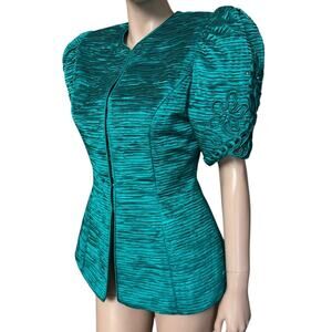 Lillie Rubin Vintage 80s Blouse Jacket Puffed Sleeves Snaps Front Closure Sz 10