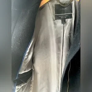 Lovely used chic black cocoon coat J. Crew Nello Gori Stadium cloth. Great warm coat, front pockets, one inside pocket with button, great collar, front zipper closure very sturdy. This is a classic silhouette, very stylish coat that could be dressed up or down and can literally pair with anything!