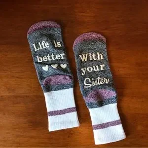 NWOT Girls Crew Length Cozy Slipper Socks, Sister Sentiments and Non Slip Grip