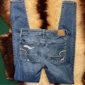 American Eagle Outfitters Women's Blue Distressed Jeans