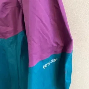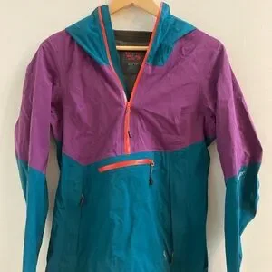 Colorblock green and purple mountain hardwear goretex raincoat