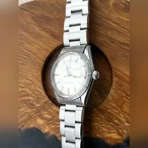 ALL-ORIGINAL GREAT CONDITION + ROLEX BOX + ALL LINKS This watch is in great all original vintage condition with minor signs of wear as detailed below. This piece offers a rare stepped bezel with dauphine hands and cyclops date window at 3 o'clock. The watch has a solid 34mm stainless steel case fitted to its original Rolex stamped stainless steel bracelet. A Rolex stamped crown is found on the case also. The watch comes with a matching Rolex Vintage Box. The automatic movement performs exactly as it should.
