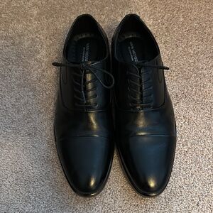 Van Heusen “Oscar” Memory Foam Dress shoes in excellent condition. Size men’s 9.5. My son wore them twice for a band concert for about an hour and a half each time.