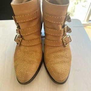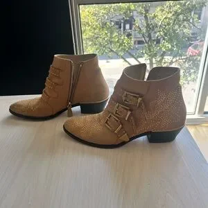 Chloe Susanna booties. Studded, tan suede. Size:37.5, US size: 7.5. Note the small marks throughout and particularly at the back.