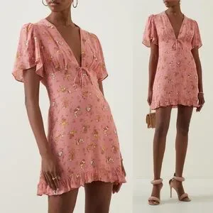New Reformation Mya Mini Dress in Rosato Pink