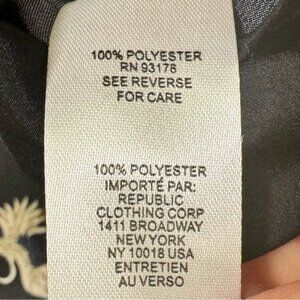 This beautiful T Tahari blouse is perfect for any occasion! The soft, silky fabric feels amazing against your skin, and the crane and cloud print is so chic. The ruffle details at the sleeves and neckline add a touch of femininity, while the hidden buttons keep it sleek and sophisticated. This blouse is versatile enough to dress up or down - pair it with jeans and sneakers for a casual look or dress it up with a skirt and heels for a night out.