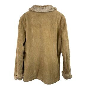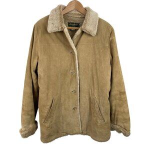 Eddie Bauer Womens Size MED Beige Tan Suede Leather Faux Fur Lined Coat Jacket