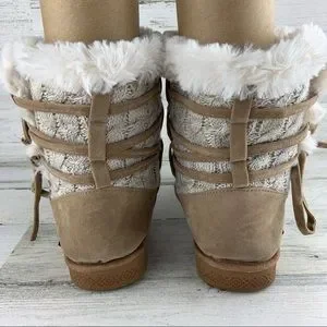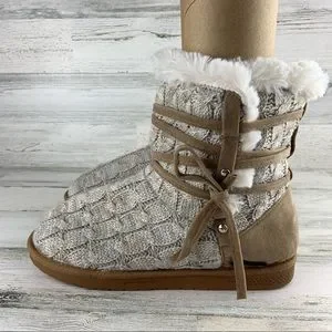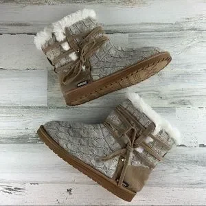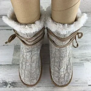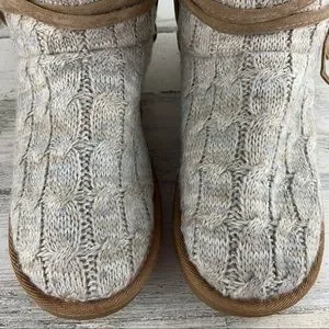 MUK LUKS Tan Grey Sweater Knit Booties Size 11