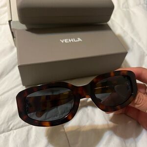 Brand new, never worn VEHLA INDI sunglasses in Tort/Smoke (tortoise frame, smokey lenses) with box, protective carrying case and microfibre cloth