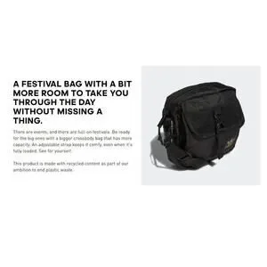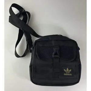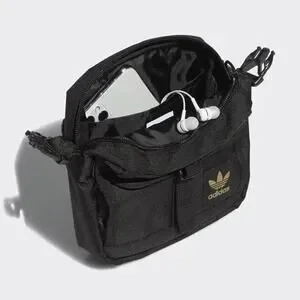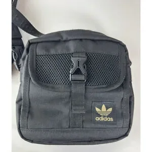 Adidas Large Festival Crossbody Bag Black Gold Trefoil Emblem Adjustable Unisex
